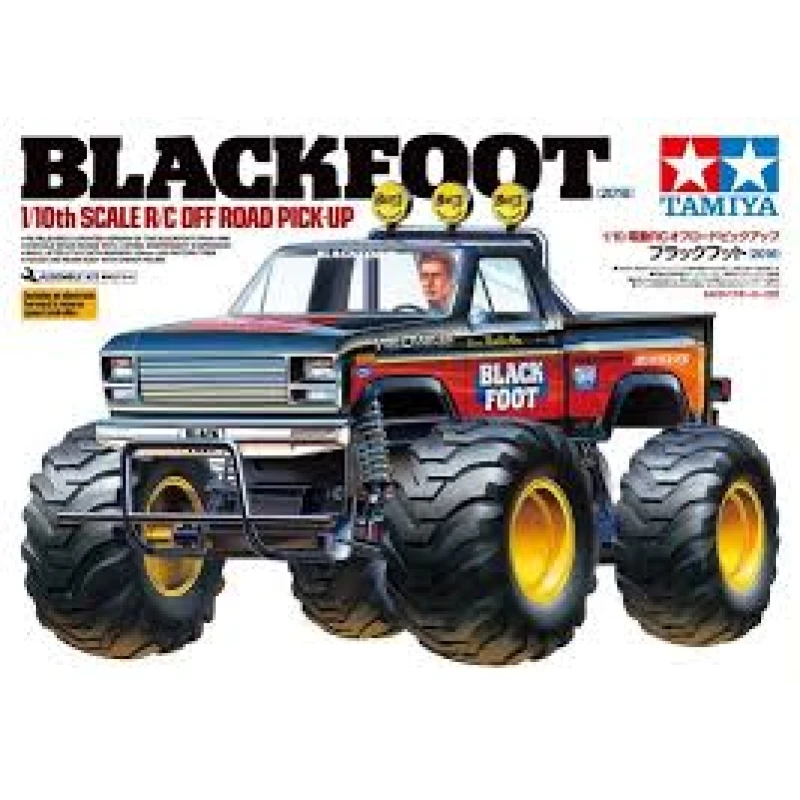 Tamiya Blackfoot -58633 is een electro aangedreven monstertruckvan Tamiya, deze wordt geleverd met elektro motor en elektronische snelheids regelaar,body, stickerset, en vele klein onderdelen